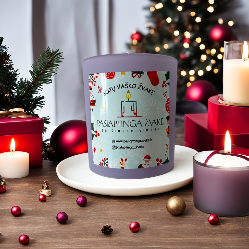 KALĖDINĖ VIOLETINĖ – Paslaptinga Žvakė 200ml su jūsų norimu tekstu viduje